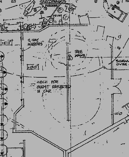 Board member happyghoul had joined the conversation at this point and mentioned an early blueprint of the HM he got off ebay, which showed a different set-up behind the mirror than the oval track for these HHG figurines: